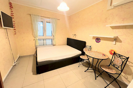 Ogrevanje je na klimo. Primerno je za eno osebo ali par.