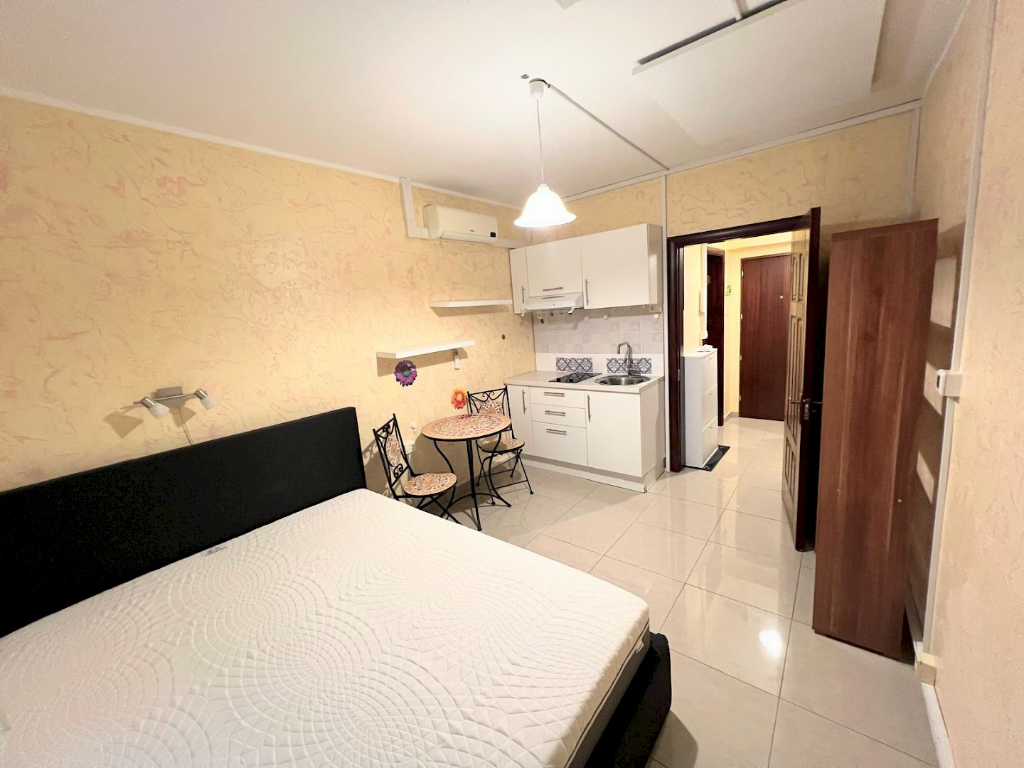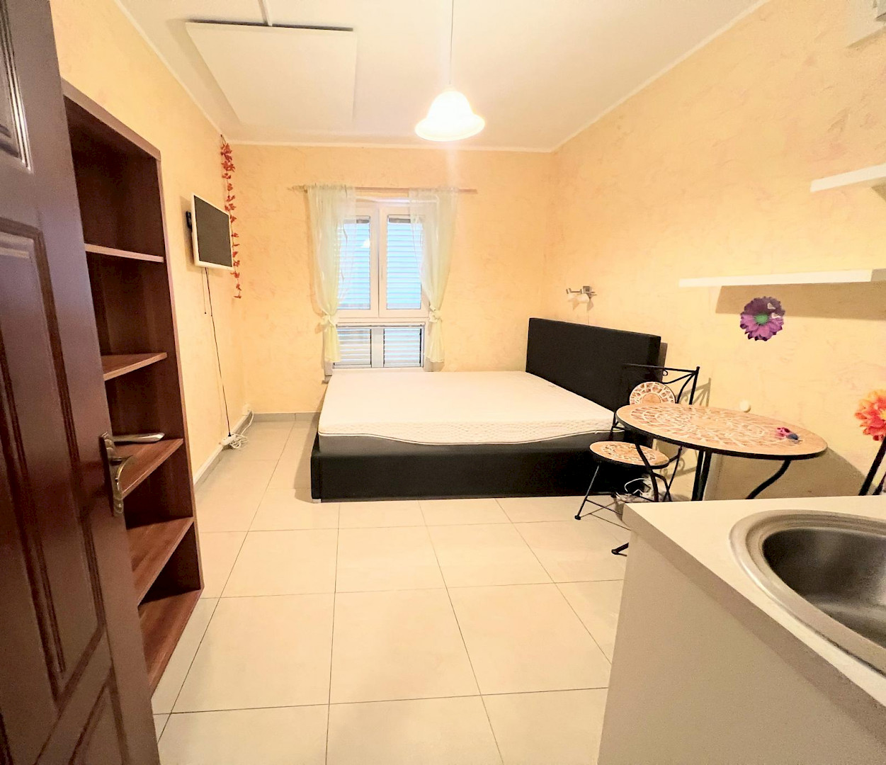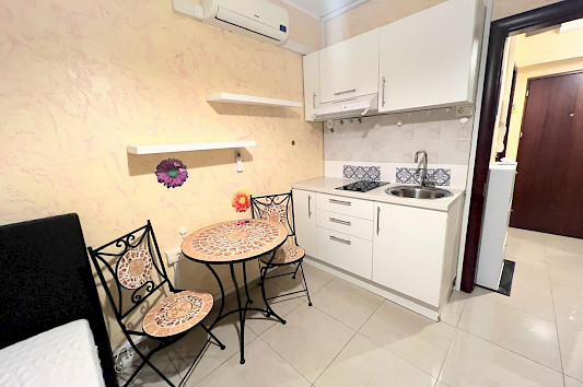 Stanovanje se nahaja v drugem nadstropju večstanovansjke stavbe. Obsega hodnik z garderobno omaro, kopalnico ter kuhinjsko-spalni del. Stanovanje je obrjeno proti jugu.